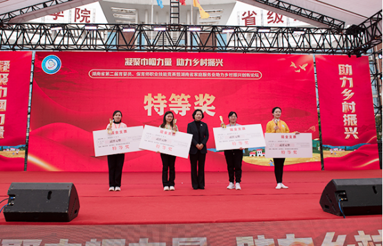 闭幕式上,裁判长秦晓红宣读了竞赛结果:汪慧、徐玲、伍雯星、李晶分别获市州组、院校组特等奖(同时获得“湖南省巾帼建功标兵”“湖南省青年岗位能手”“湖南省技术能手”荣誉称号),熊小佳、康霞等获市州组一等奖,邹薇、丁扬、谢萍等获院校组一等奖,朱唯、姜敏敏,刘媚、邹莎等分别获市州组、院校组二等奖,秦敏、王霞、张菡等获三等奖。衡阳市妇联、长沙幼儿师范高等专科学校和长沙市妇联、核工业卫生学校等单位则分别获“组织奖”与“优秀组织奖”。娄底职业技术学院和金职伟业集团有限公司获得“特殊贡献奖”。娄底职业技术学院获得优秀组织奖,老师获得金奖1个,一等奖2个,二等奖3个。