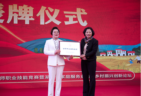 现场,黄芳为全国三八红旗手、金职伟业集团有限公司董事长彭英授奖。卢妹香为湖南省妇女儿童发展基金会金职伟业温暖基金授牌。省妇联发布了2023年“湘女姐姐”家庭服务联盟专项研究课题。
