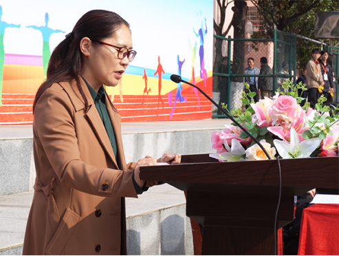 游新娥在致辞中对全体裁判员、运动员致以亲切的问候和崇高的敬意,向所有筹备的工作人员表示衷心感谢。她对此次比赛提出三点希望:一是高度重视,提高思想认识;二是公平公正提升竞技水平;三是精心组织,提高服务水平。最后她希望每位学子都能享受这次盛会,展现学校文化特色和精神风貌!