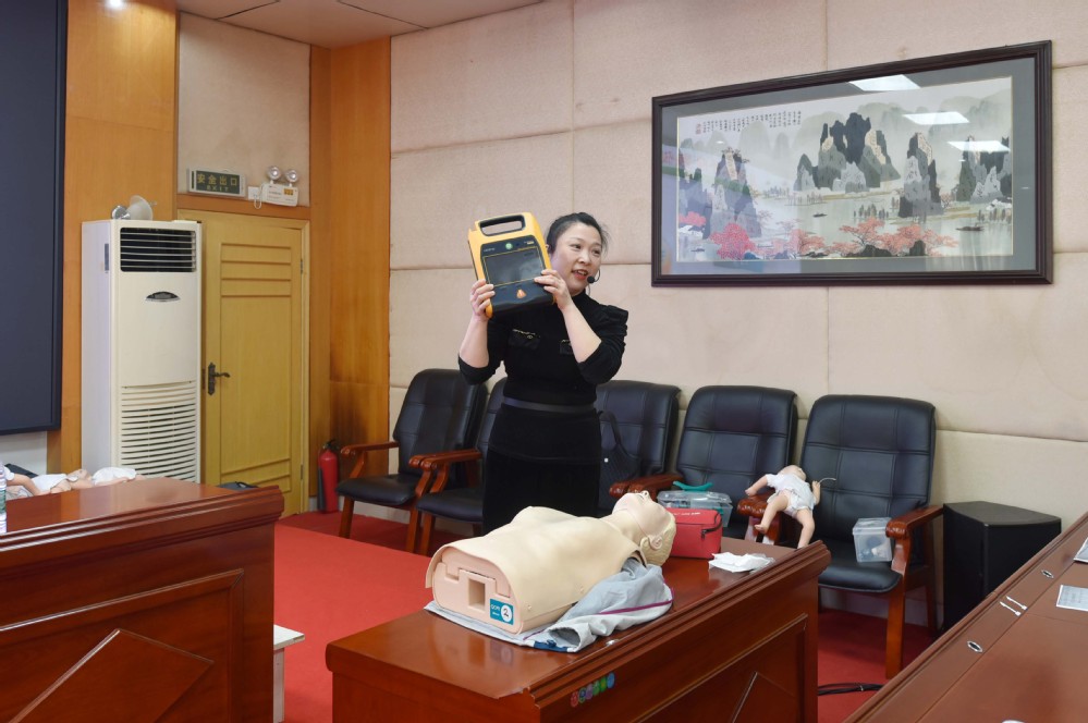 5月8日,娄底市中心医院进我校开展“第一目击者”急救师资培训党日活动,为教师职工们带来了一场生动的成人与儿童心肺复苏、ADE使用、气道异物梗阻急救、外伤包扎止血的知识培训。本次活动由市中心医院健康管理党支部组织开展,特邀市中心医院临床技能培训中心主任杨一丹及团队授课。我校130余名教职工参加。