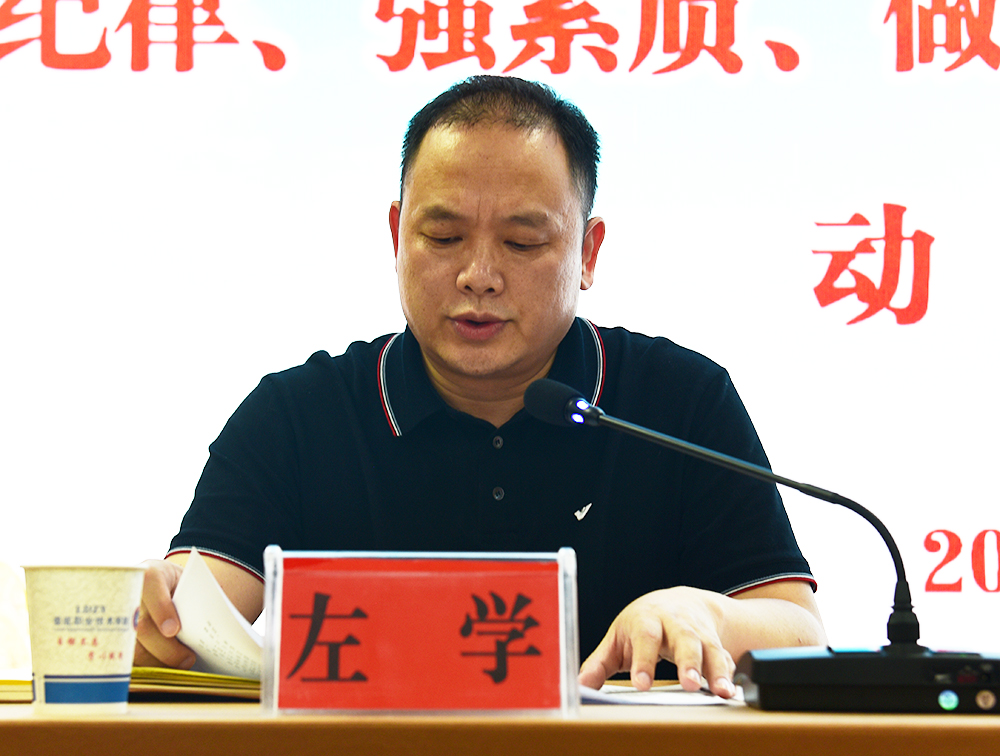 在动员大会上,纪委书记左学宣读了《关于在全校开展“严纪律、强素质、做表率、争先进”作风建设年活动的实施方案》。他根据市委精神,结合我校实际,从指导思想、工作原则、组织领导、活动目标、活动方式和内容、活动时间安排及有关要求七个方面作了简要阐释。