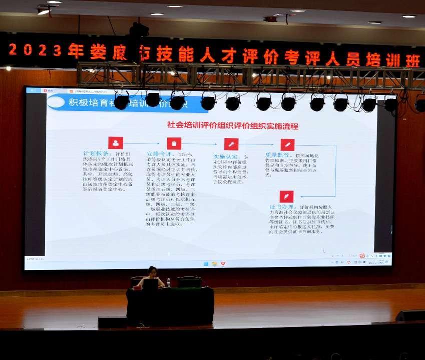本次培训班由娄底市人社局主办,娄底职业技术学院承办。参加培训的学员主要来自在娄大中专院校,涉及电工、健康照护师、电子商务师、社会体育指导员和网络与信息安全管理员等41个职业培训项目。培训班邀请了省人社厅职业技能鉴定中心相关负责人和涟钢、娄底技师学院、潇湘职业学院等相关院校资深教师担纲主讲,通过集中授课和分组模拟考评相结合的方式,对学员进行系统且有针对性的考评技术能力培训。学员参加培训并通过公共知识考试、操作技能考核和考评技术实习后,方可获颁考评员资格证书。