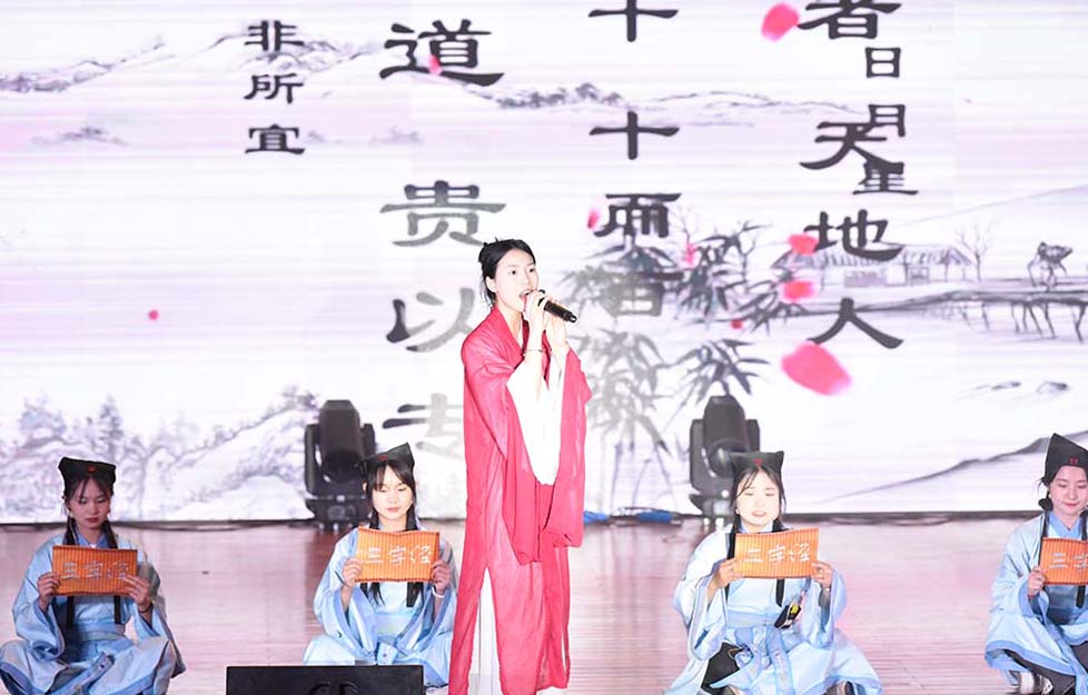 在比赛现场,选手们站在舞台上饱含深情,以舞台背景、音乐、道具、舞蹈、吟唱、书画等艺术表现形式,创造了一场视觉盛宴,将经典诗文的魅力演绎得淋淋尽致。