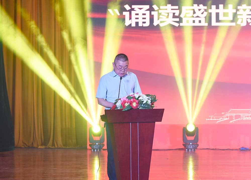 金建雄致开场辞,他表示希望能借此次比赛机会,重温历史,追溯文化,弘扬优秀传统文化,让经典滋润心田,伴随成长,使文明溢满校园。