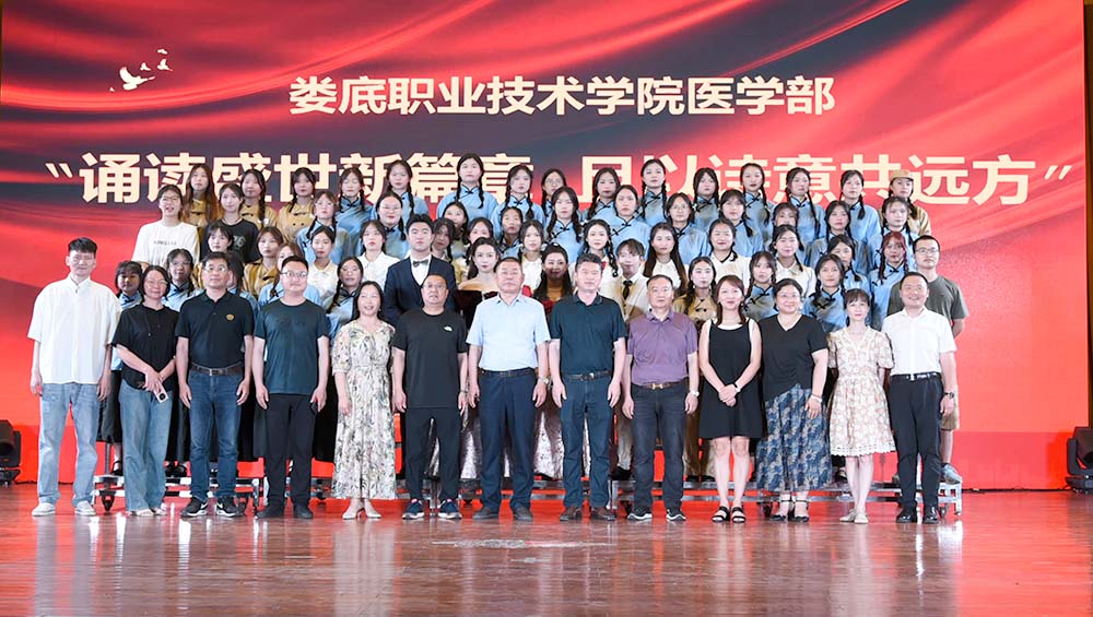6月1日晚,我校医学部“诵读盛世新篇章·且以诗歌共远方”经典诵读比赛决赛在明德大礼堂举行。经过初、复赛两轮筛选、评比,共有12个节目入围。党委委员、副校长兼医学部主任金建雄,医学院常务副主任范国正,医学部党总支书记吴群雄,医学部副主任兼保卫科科长曹雄辉,药学院院长刘建宇,学工处副处长肖靓、邱玉贵,校团委副书记游骏,离退休总支部书记张波出席。指导老师、评委和1600余名学生观看了本次决赛。