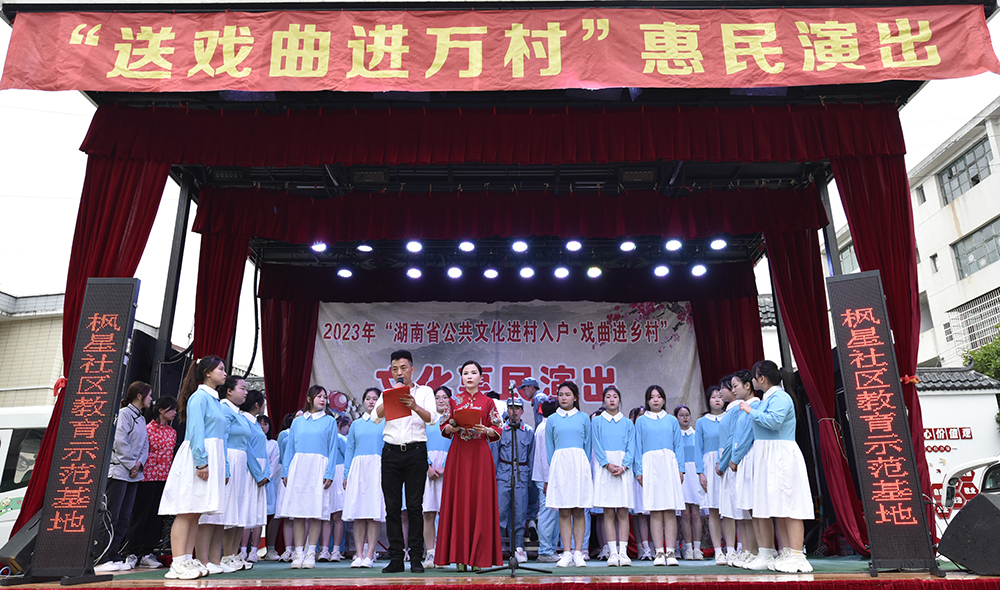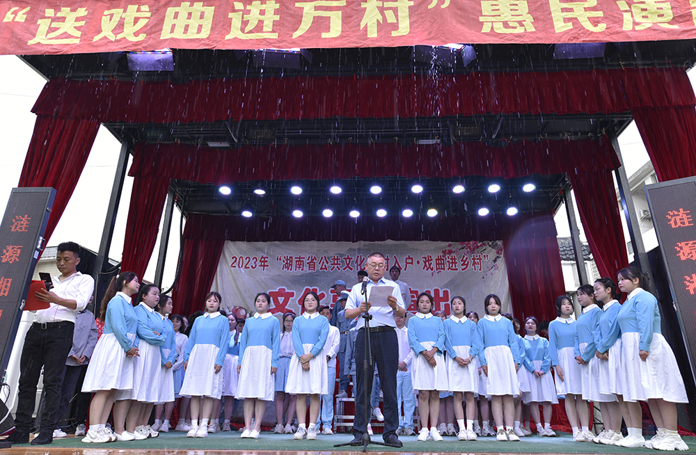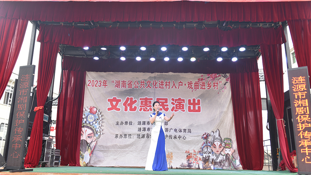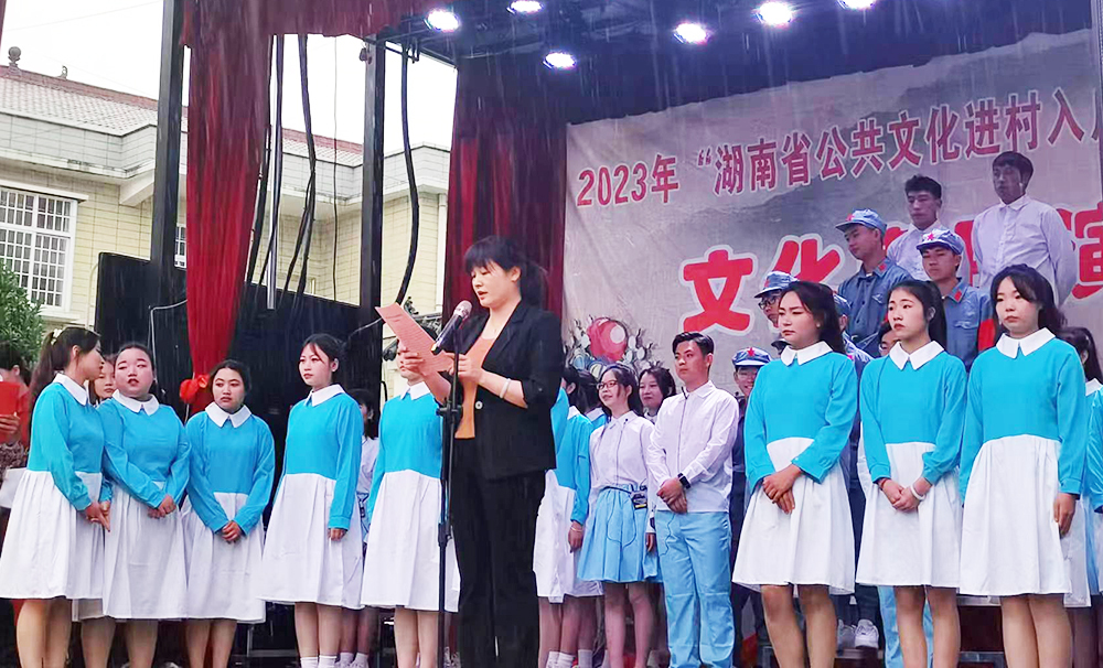 仪式结束后,涟源湘剧院和我校学生志愿者以独唱、器乐、舞蹈、小品、笛子、萨克斯、花鼓戏等形式为现场观众演出了《青春中国》、《火红的萨日朗》、《玛尼情歌》等十二个剧目。演员们惟妙惟肖的表演获得了观众们的喝彩,也让群众感受了文艺作品展现身边真实故事和中国传统文化的魅力。