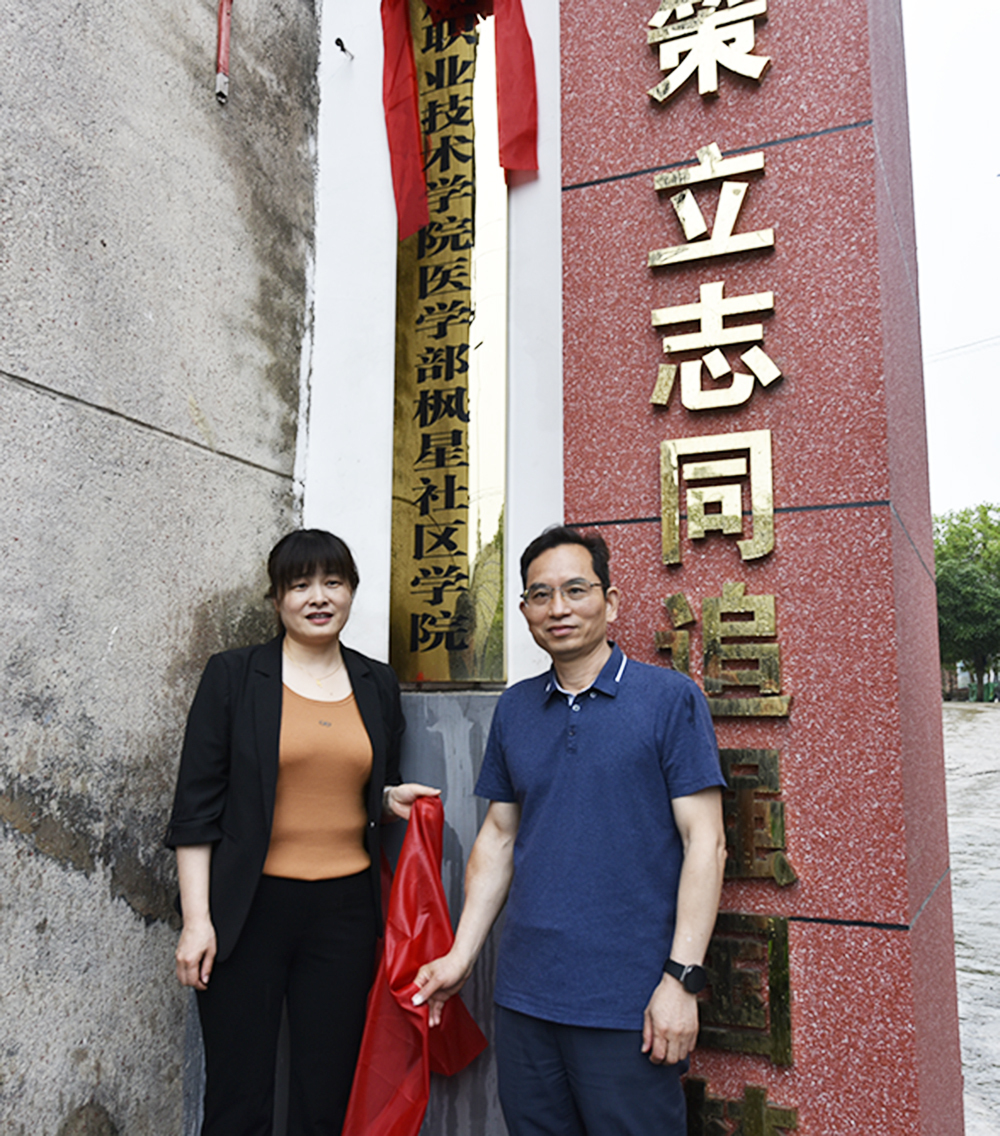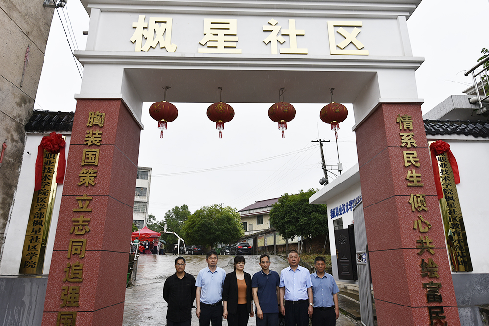 6月5日上午,我校师生志愿者与涟源湘剧院共同组织送文化、送健康下乡,庆祝我校与涟源市枫坪镇结对共建枫星社区学院、社区教育示范基地正式挂牌成立。枫坪镇党委书记邱娇、镇长黄国忠、党委专职副书记刘权等领导班子及社区支部书记谢国彬等工作人员,我校校长张征澜、副校长兼医学部主任金建雄、医学部常务副主任范国正、医学部副主任曹雄辉、曾芍及医学部二级学院负责人和专业教师参加了此次活动。