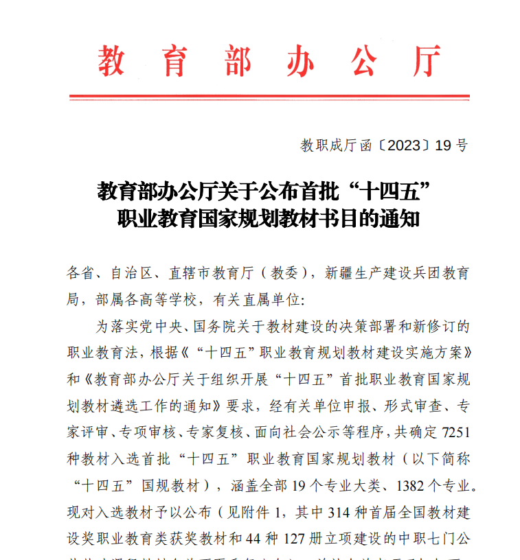 近日,在《教育部办公厅关于公布首批“十四五”职业教育国家规划教材书目的通知》中,我校教师范国正主编的《眼耳鼻咽喉口腔科护理学》、刘罗仁主编的《工业机器人操作与编程(ABB)(第2版)》《工业机器人视觉技术(第2版)》和夏高彦主编的《手绘表现技法(第2版)》4本教材,入围首批“十四五”职业教育国家规划教材新申报名单。