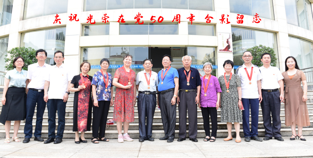 张征澜为9名老党员佩戴“光荣在党50年”纪念章。他指出,纪念章是对各位老党员过去功劳的充分肯定,也是对我们后来者的一种激励。张征澜还向老党员们汇报了今年上半年学校工作取得的良好成绩,表示成绩的取得离不开老党员们打下的坚实基础,希望各位老党员继续为学校发光发热,同时给老党员们送上了真诚的祝福。