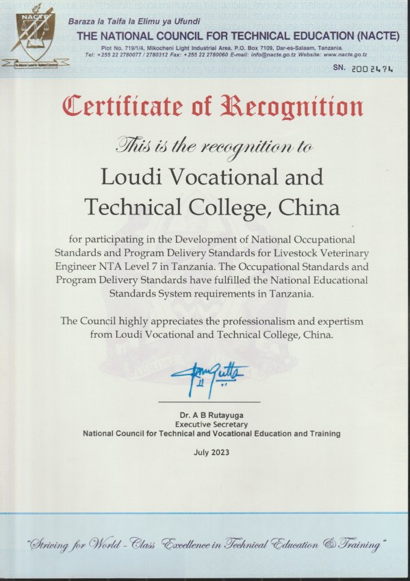近日,由我校牵头完成的坦桑尼亚畜牧兽医工程师8级国家职业标准及专业教学标准、参与完成的坦桑尼亚畜牧兽医工程师7级国家职业标准及专业教学标准均顺利通过坦桑尼亚国家技术和职业教育培训委员会(NACTVET)审核,获官方认证并正式纳入坦桑尼亚国家职业教育体系。