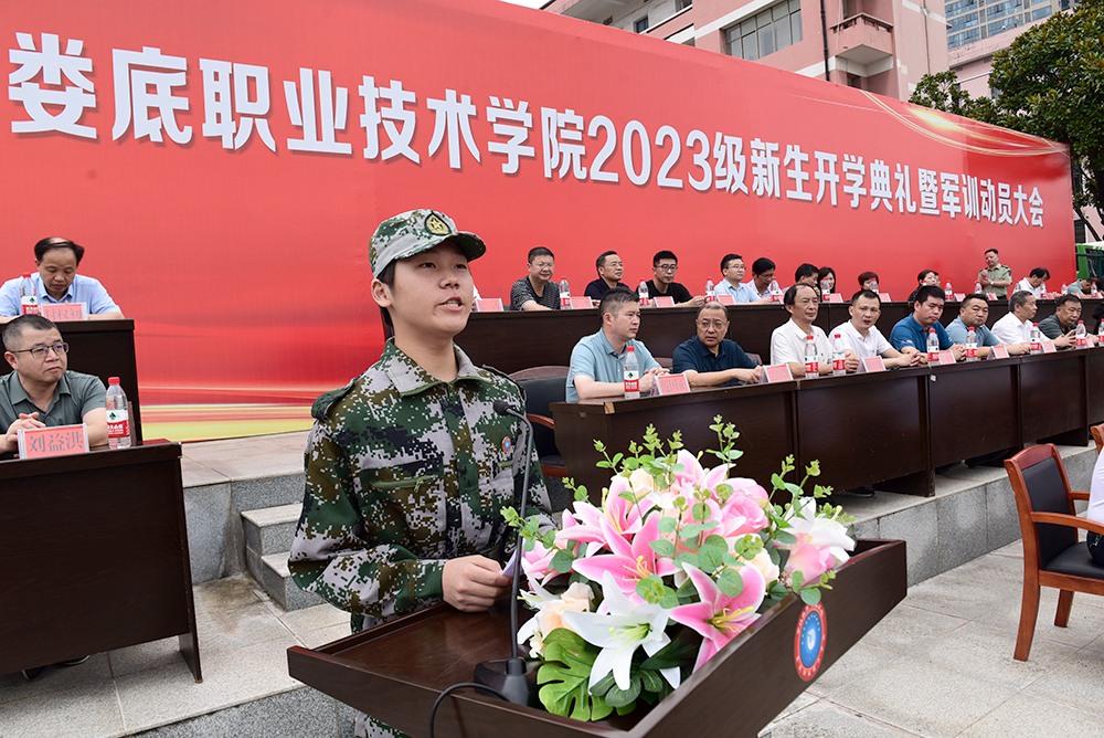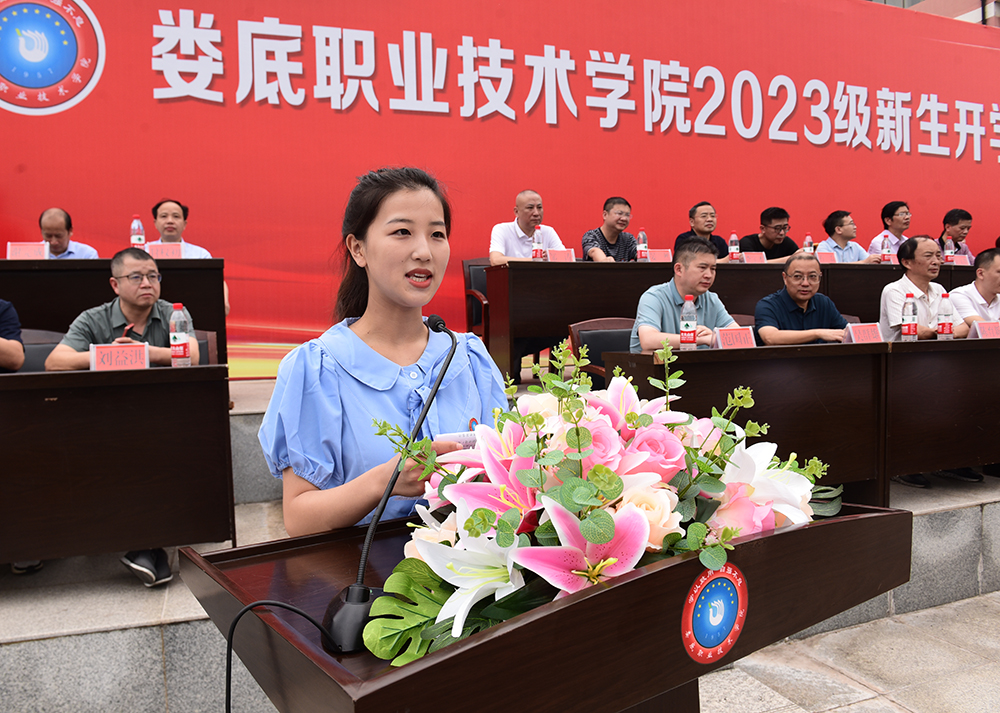 校领导还为新生代表佩戴校徽,从此同学们正式成为娄底职业技术学院一员,开启校园新篇章。