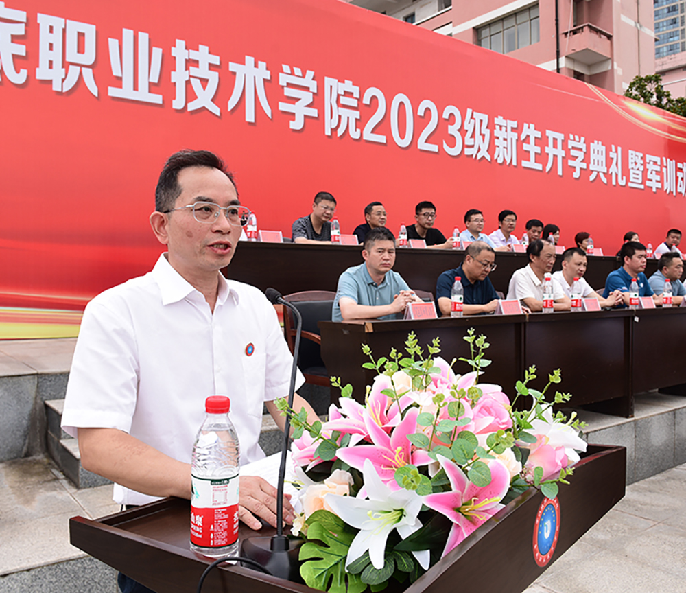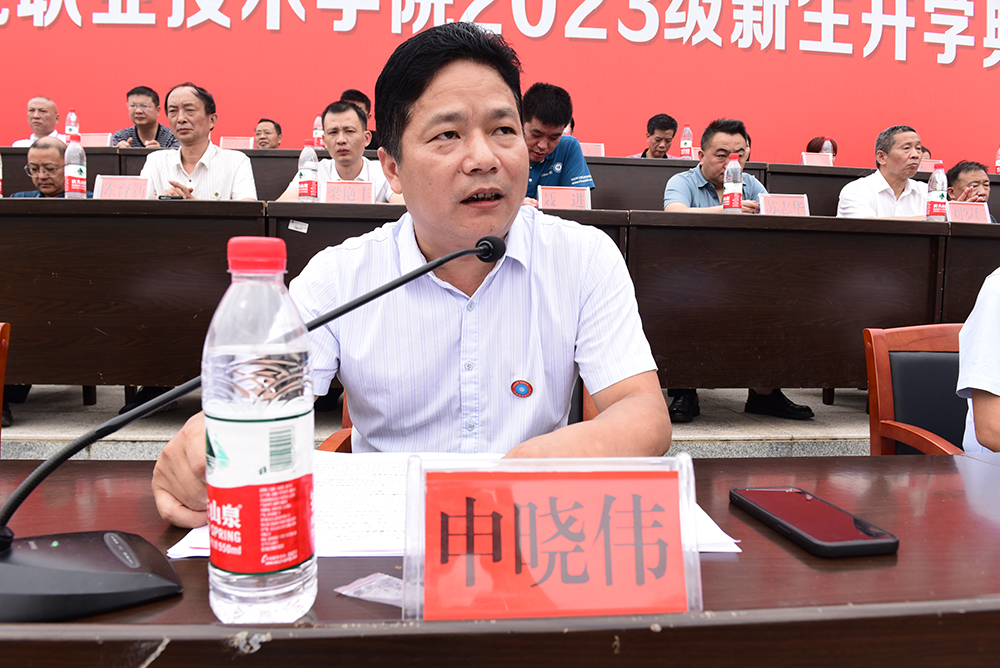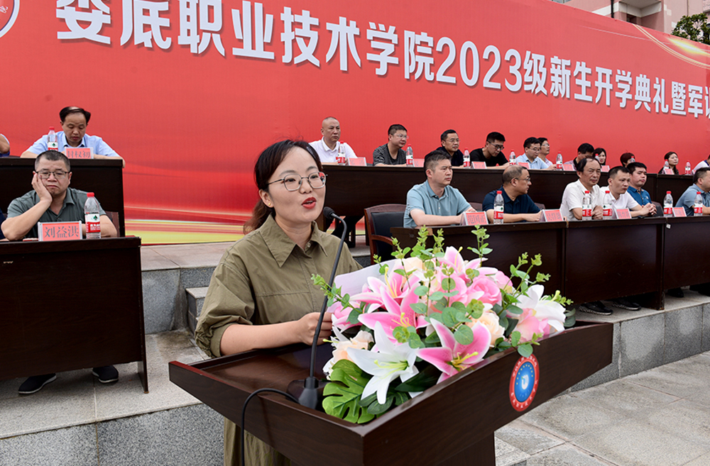 9月6日上午,我校在综合校区隆重举行了2023级新生开学典礼暨军训动员大会,全体校领导,各部门单位负责人,2023级全体新生参加了本次典礼。典礼由党委委员、副校长申晓伟主持。