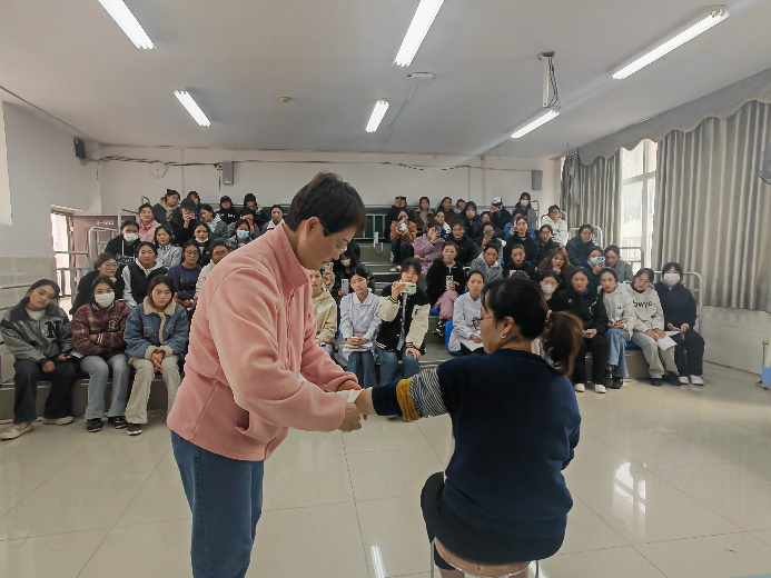 11月25日,娄底职业技术学院现场救护第一目击者培训基地第1期急救培训正式开班。本期培训联合了护理学院教师党支部的汉藏师生特别活动,所有学员都来自护理学院23级的藏族新生,在加强汉藏师生交流的同时,开展了一场生动且实用的急救科普活动,提高了藏族学生应对突发事件的卫生应急意识和自救互救能力。