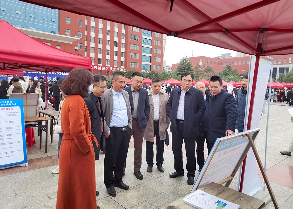 市人民政府办副主任李国庆、市人社局副局长曾春谷、市教育局党组副书记、副局长易俊率团参加招聘会,并与企业招聘人员和学生互动,召开了“校政企”联合促就业座谈会,群策群力推进就业工作开展,也对学校聚焦学生就业工作做出的大量工作表示肯定。