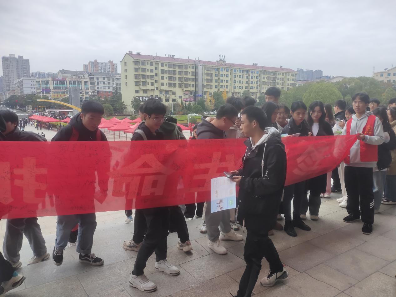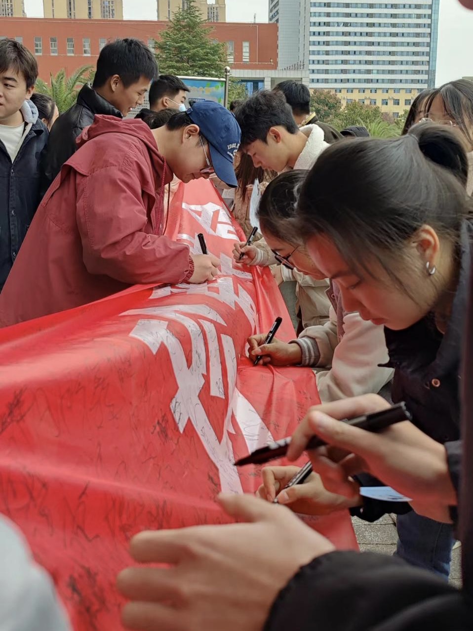 12月1日中午12点,防艾宣传教育周启动仪式在文化广场举行。我校志愿者和学工处一起组织了师生万人签名活动。活动现场气氛热烈,同学们积极地在横幅上签名,表达洁身自好,呵护自己和他人的决心和承诺。活动现场还发放防艾滋病宣传资料两万余份,同学们积极参与,并纷纷表示收获颇多。