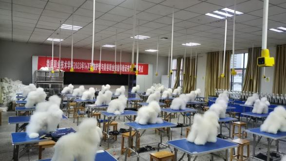 12 月 16 日至 17 日,农林工程学院组织了畜牧兽医、 动物医学专业 40 名学生参加了《1+X 宠物护理与美容》职业技 能等级证书考证。考试工作共分三个环节,12 月16日晚上进行了理论知识考试,17 日上午进行了实操考试。名将宠美教育科技(北京)有限公司两名考评员全程参与考评。