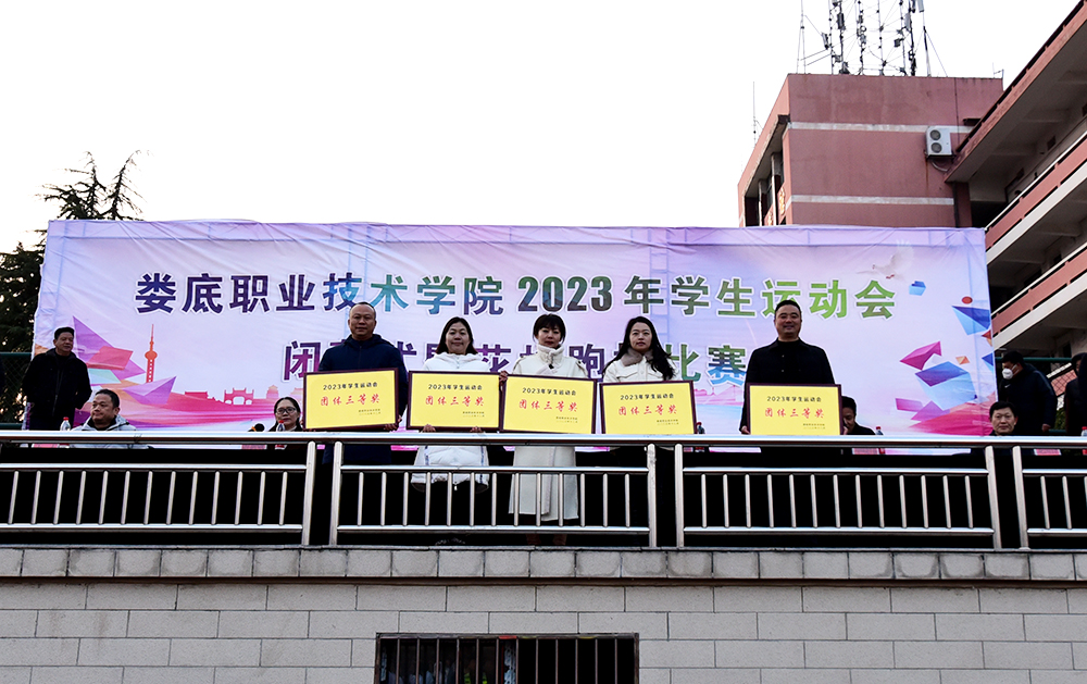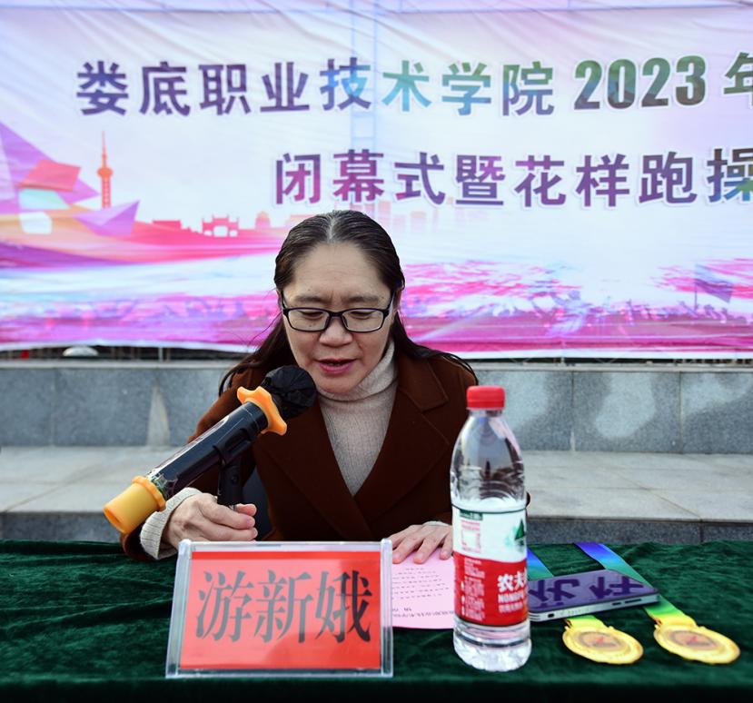 游新娥宣读娄底职业技术学院2023年学生“阳光跑”优质奖章获奖情况,排名前200名同学授予阳光跑优质奖章。在本次学生运动会10个比赛项目中,最终医学院和商学院获团体一等奖;电子信息工程学院、汽车学院、农林工程学院获团体二等奖;艺术设计学院、建筑工程学院、文化传播学院、机电工程学院、中职部获团体三等奖。机电工程学院和文化传播学院获体育道德风尚奖。医学院和商学院获得优秀组织奖。