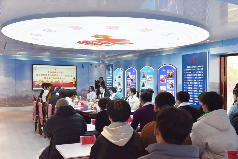 1月9日,市委常委、市委统战部部长康艳华,市委统战部副部长、市民宗局局长陈健庄一行到校开展铸牢中华民族共同体意识专题调研。我校党委书记张征澜,党委委员、副校长申晓伟陪同调研,校宣传统战部、学生工作处、团委、教务处、后勤服务中心等相关部门及20名各民族优秀学生代表参加调研座谈会。