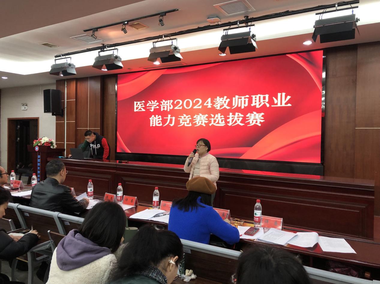 为促进教师教学能力和专业素养的全面提升,同时为2024年湖南省教师职业能力比赛遴选选手,医学部于3月17日举行了2024年教师职业能力竞赛选拔赛,学校副校长金建雄、医学部常务副主任范国正出席,各二级学院院长、副院长及教师代表观摩学习。医学部副主任曾芍主持。