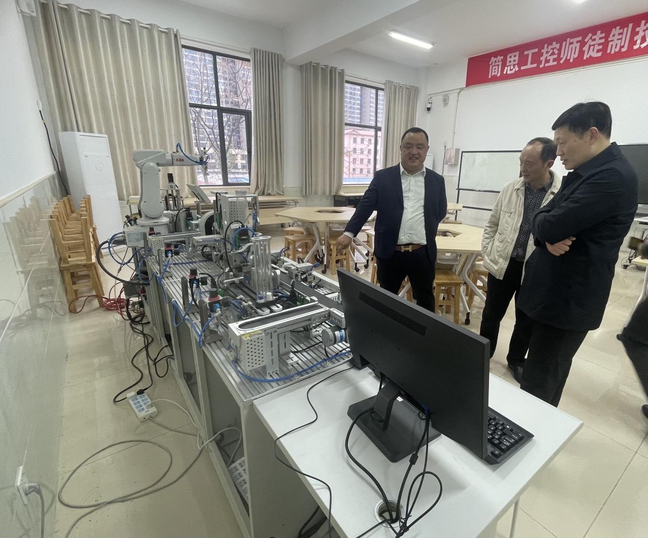 会后,刘小雄校友在学校领导陪同下参观了校内实训基地。(熊明璇)