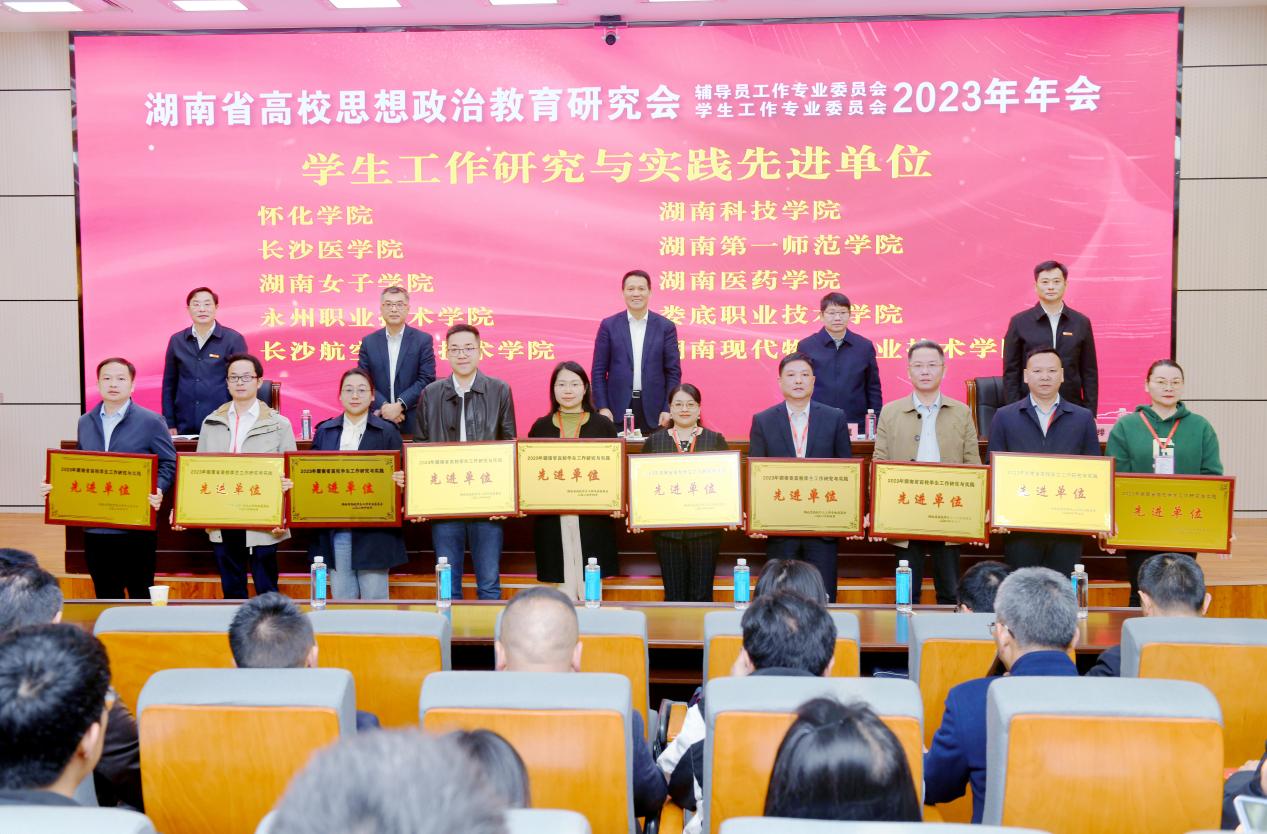 会上宣读了《关于表彰2023年湖南省高校辅导员工作研究与实践先进单位、先进个人,学生思想政治教育研究与实践先进单位、先进个人,辅导员优秀论文和学生思想政治教育优秀育人案例的决定》,现场表彰了湖南省高校辅导员工作和学生工作研究与实践先进单位和个人。我校荣获2023年湖南省高校学生工作研究与实践先进单位。