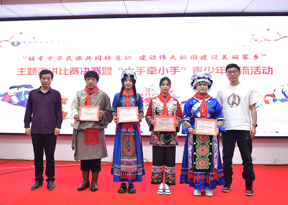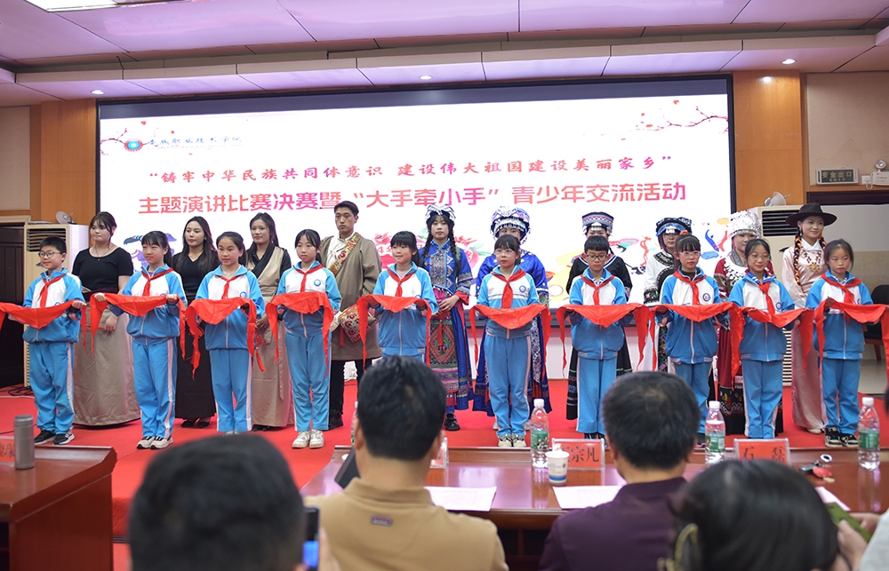 为引领学生铸牢中华民族共同体意识,展现少数民族学生良好精神风貌,4月25日下午,娄底职业技术学院“铸牢中华民族共同体意识建设伟大祖国建设美丽家乡”主题演讲比赛决赛暨“大手牵小手”青少年交流活动在该校第一教学楼报告厅举行。党委委员、副校长申晓伟,校党委宣传统战部部长王宗凡,团委书记石磊,宣传统战部副部长刘艳,市委统战部民族科科长王璨琛,娄星区民宗局民宗组组长胡国栋到场观摩比赛。学校各二级学院学工副院长、师生代表,娄底市一小师生代表共同观看比赛。