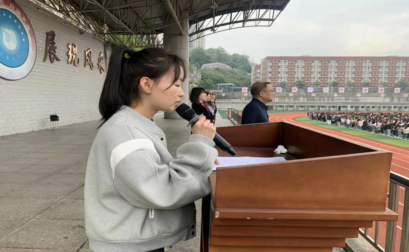 伴随着庄严的国歌声,五星红旗冉冉升起,所有人肃立敬礼,表达对祖国的深深敬意。学生代表李鸿以“青春与责任让五四旗帜永久飘扬”为主题进行了国旗下的演讲。她在讲话中提到,作为医学专业的学生应该以更加饱满的热情和更加坚定的信念,用实际行动去践行五四精神,去展现新时代医学青年的风采。