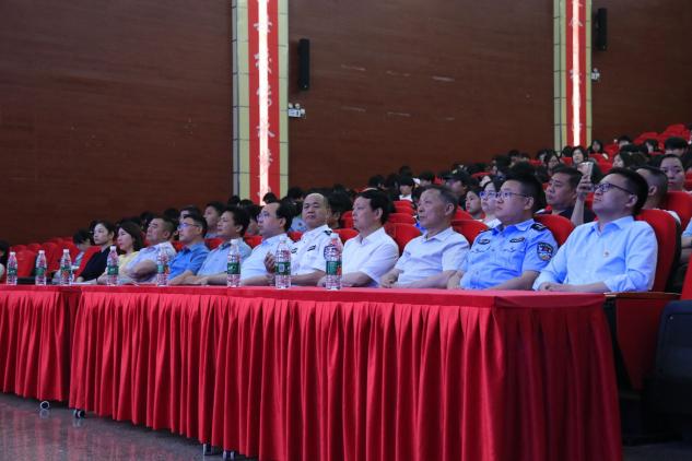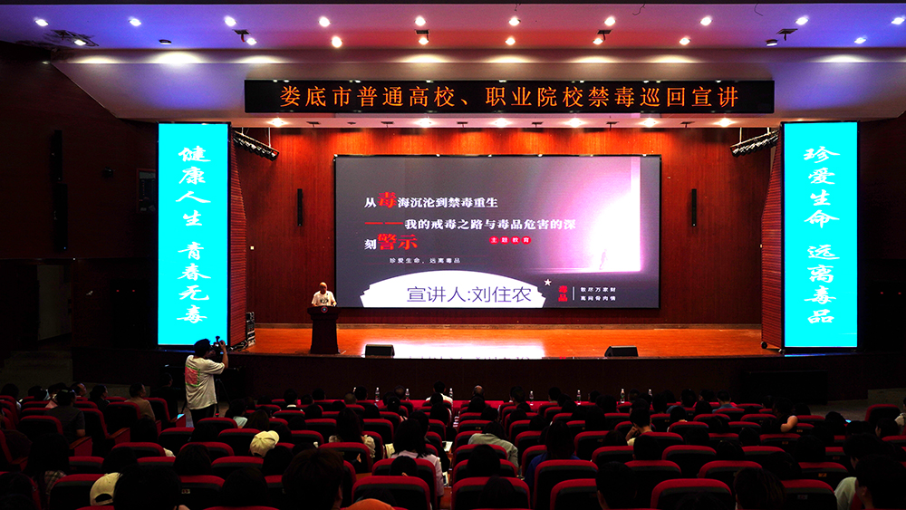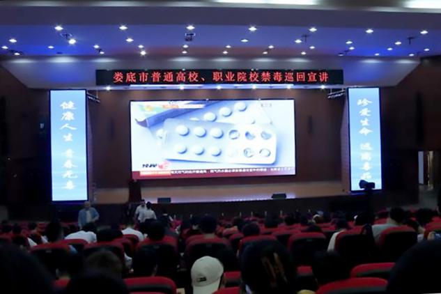 仪式现场,我校党委委员、副校长申晓伟致欢迎辞;组织观看了湖南青少年毒品预防警示教育片和禁毒公益宣传片,有效强化在场学生的识毒、防毒、拒毒意识;我校学生唱响禁毒歌曲《我想》,表达青年学生拥抱美好人生的奋进之情;三名戒毒典型亲身讲述从染毒后的沉沦到戒毒后的重生历程,呼吁学生们拥抱美好青春、筑牢拒毒防线;娄星区禁毒办组织人员朗诵《远离毒品、珍爱生命》,抒发了与毒品作斗争的坚定决心;娄底市强制隔离戒毒所布置仿真毒品展示区和禁毒宣传展板区,用一个个模型、一张张图片、一次次答疑带来了一场禁毒知识盛宴。