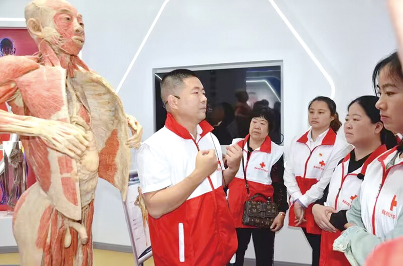 在娄底职院医学部红十字应急救护智能化培训基地,该校临床医学院院长谭芳带领急救师资团队,给红十字志愿者们进行了心肺复苏、心脏除颤仪使用等一系列应急救护技能的培训。红十字应急救护智能化培训基地于今年4月通过湖南省红十字的认定并筹建完成,该基地利用智能化技术,模拟真实的应急救护场景,通过远程教育平台,为急救培训,提供更加真实、高效、便捷的应急救护培训,为“数字赋能,救在身边”应急救护工作注入了新的活力。(肖成树 谭芳 曹亚丹)
