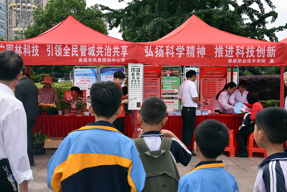 5月31日,学校科技处组织医学部、机电工程学院、商学院等二级学院的专业技术人员和科普志愿者20多人到娄星广场参加由市科技局、市教育局、市卫生健康委、市科协联合组织举办的科技活动周科普广场现场宣传咨询展示活动。