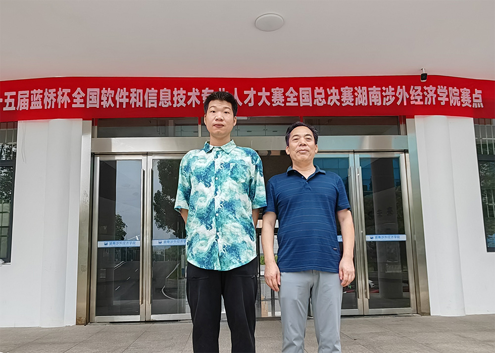 李鑫同学(左一)与吴水平老师(右一)合影