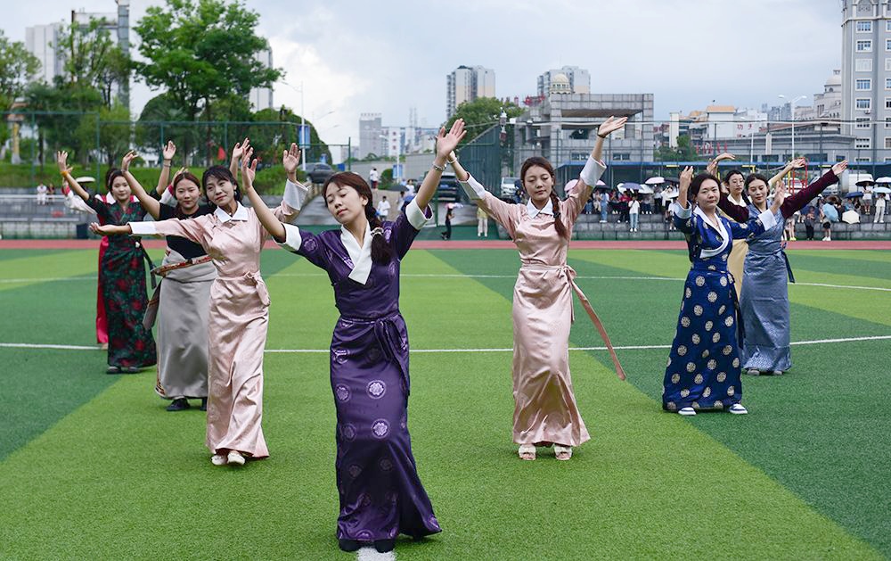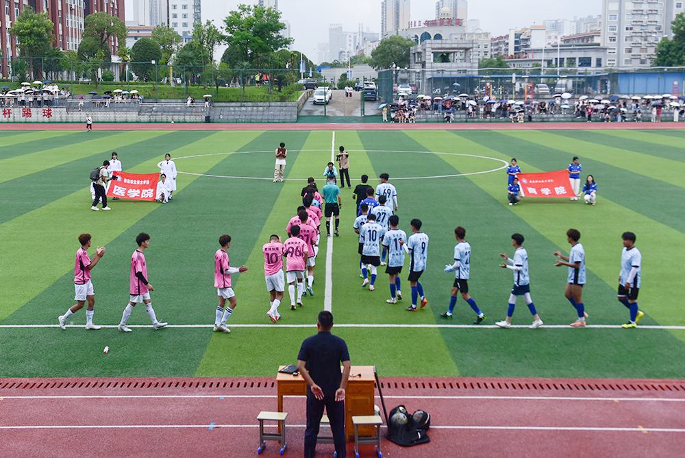 虽然天公不作美赛前下起阵雨,赛前医学院的学生们表演了开场舞,双方球员在赛前还举行了藏族加油仪式,给医学院和商学院两支队伍的加油助威声此起彼伏成为比赛中一道靓丽的风景线。