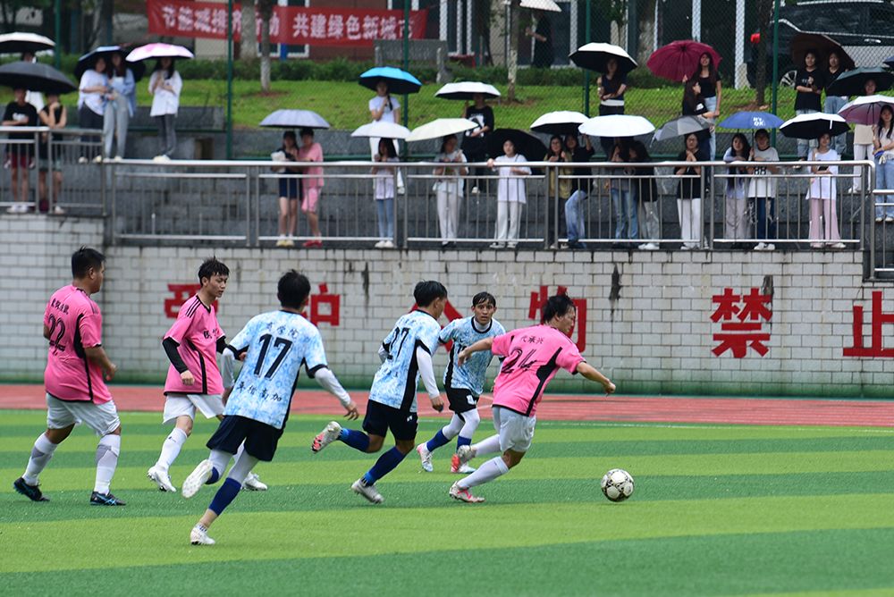 比赛开始后,双方队员迅速进入状态,展开了激烈的对抗。场上球员们灵活跑动,精妙传球,展现出高超的足球技艺,在一次次进攻与防守的转换中,球员们展现出了坚韧不拔的斗志和默契的团队配合。观众们的呐喊声和助威声此起彼伏,为比赛增添了更多激情与活力,最终商学院以2:1的成绩战胜医学院,获得本次比赛的冠军。