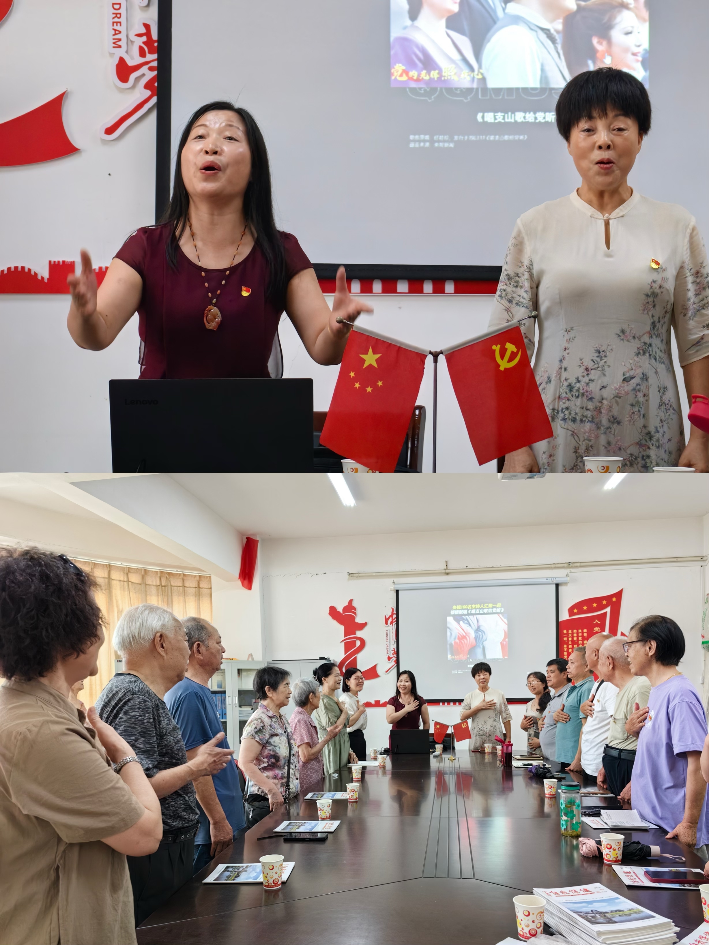 7月9日下午,在庆祝中国共产党成立103周年之际,三支部20余名党员干部顶着烈日,冒着酷暑,踏着热浪来到综合楼712党员活动室,在离退休总支书记张波指挥下深情演唱经典歌曲《唱支山歌给党听》,就这样拉开了我校离退休三支部党纪学习教育主题党日活动序幕。