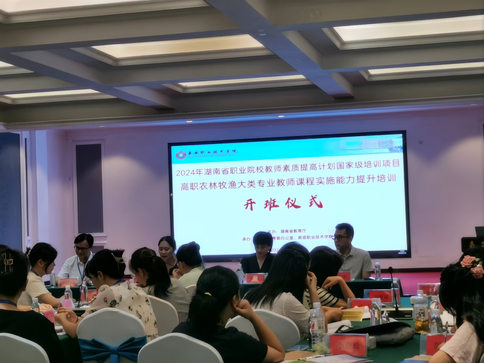 7月15日,“职业院校教师素质提高计划2024年国家级项目——高职农林牧渔大类专业教师课程实施能力提升培训”开班仪式在娄底职业技术学院举行,来自省内14所兄弟院校的40名学员参加研修。本次研修班由湖南省教育厅主办,省职教培考委办公室、娄底职业技术学院承办。开班仪式由我校教务处长朱燕教授主持。