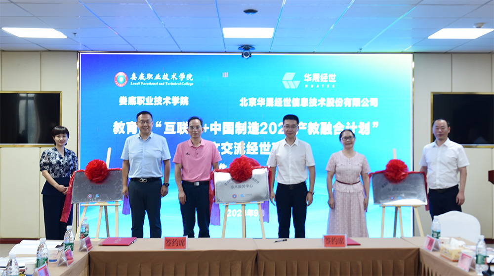 第二阶段签约揭牌,学校代表游新娥、企业代表陶松签署了校企合作项目战略合作协议,张征澜、张宇见证签约。随后,校企双方代表就校企共建技术服务中心、认证培训中心、研发创新中心揭牌。