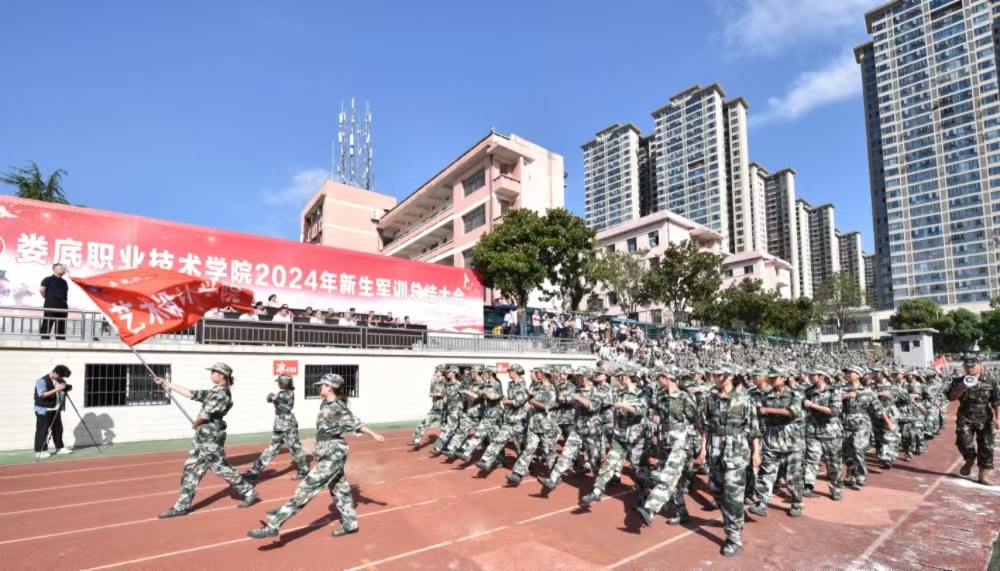 伴随着激昂的军歌,各队列以精神饱满的军容、昂首阔步的姿态依次亮相主席台下接受检阅。他们步伐坚定、眼神坚毅、气势如虹,展示着新时代大学生自信向上的风采,展示着娄职学子的青春与活力。