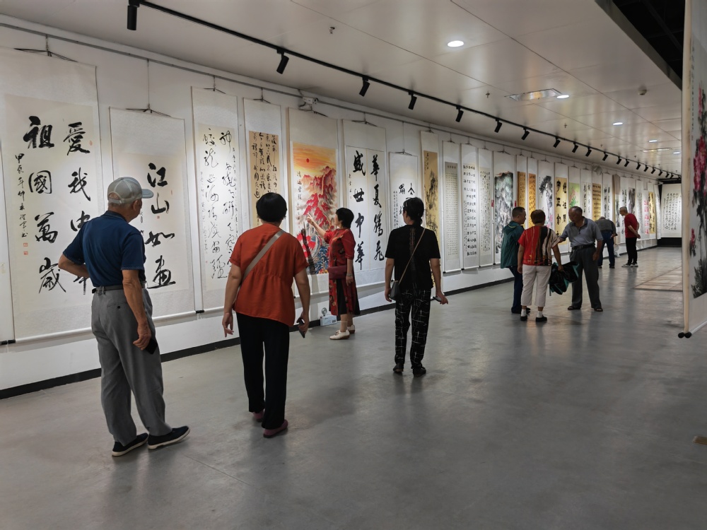 老同志们以饱满的热情和崇敬的心态欣赏了181幅参展作品,大受鼓舞,感受到了我市的老领导、老同志为了庆祝中华人民共和国成立75周年,深入学习贯彻落实习近平新时代中国特色社会主义思想和党的二十大及三中全会精神。为了弘扬中华传统文化,厚植爱国主义情怀,丰富老年人的精神文化生活为全市人民所作出的贡献。有许多耄耋老人(老领导)不畏年迈体弱,仍然兴致挥毫泼墨,“丹青敷彩歌盛世,翰墨留芳颂中华。慱彩写新篇,妙笔画江山”。向全市人民展现其深厚的文化底蕴和素养。从书画中也体会到了家乡娄底城乡建设风貌及民富国强的幸福满足感。