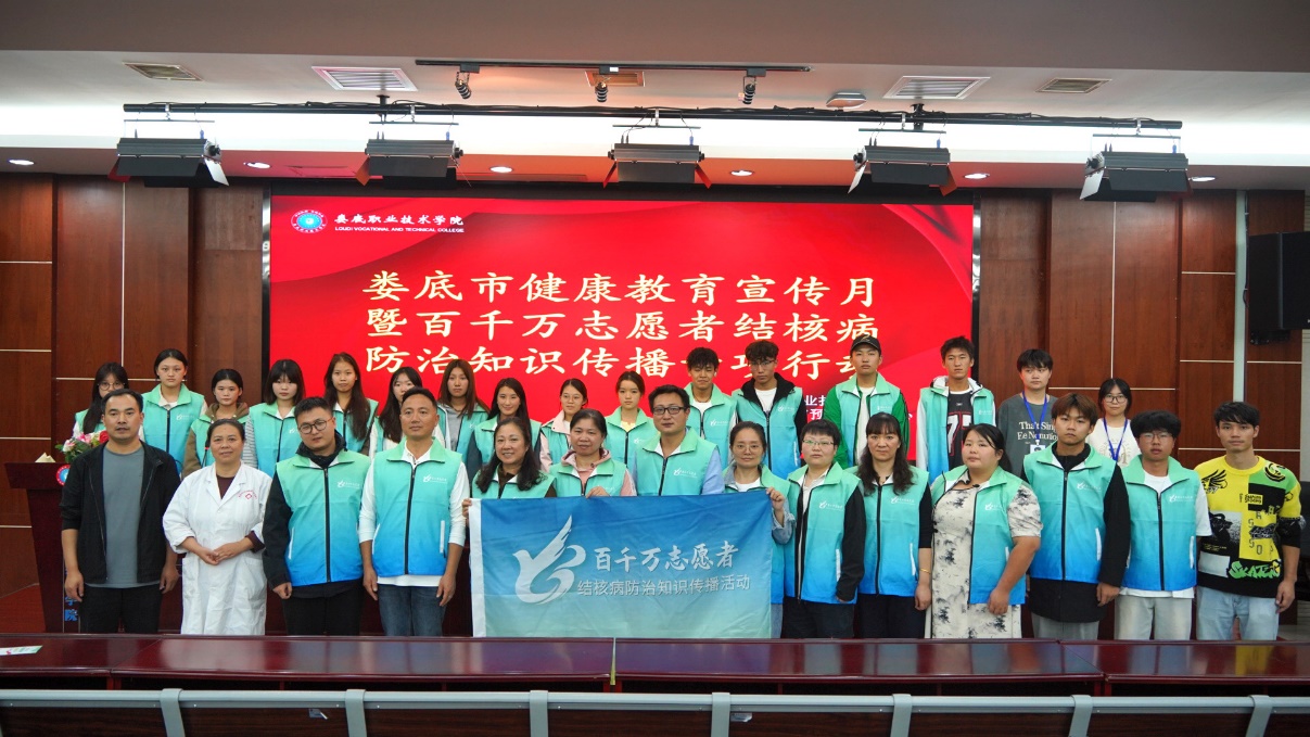 10月17日,娄底市疾控中心联合我校开展健康教育宣传暨百千万志愿者结核病病防治知识传播专项行动。市疾控中心党总支委员、纪检员吴静芳,结防科科长邱光前、健康教育与卫生宣传科科长刘桂平、结防科副科长邹文慧出席会议,学校300余名师生参加,活动由学校党委委员、副校长龙国锋主持。