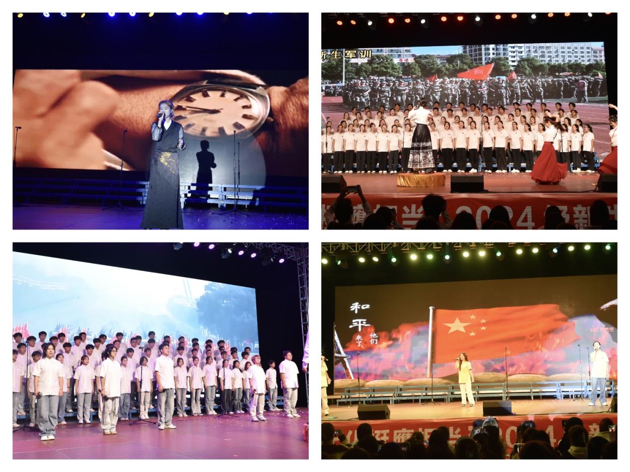 现场演唱的歌曲有《明天会更好》《向光而行》《地道战》《赤伶》《我爱你中国》《奢香夫人(长征版)》《阿嬷(爱国版)》《奔跑》《紫荆花盛开》《当那一天来临》《祖国不会忘记》《大中国》。同学们精神饱满,气势高昂,以歌载梦,歌颂心中的理想,抒发对祖国的忠诚和热爱、表达对祖国的赞美和祝福,凝聚着奋发向上的青春正能量,尽显赤子之心。藏族学生带来的舞蹈《洗衣歌》舞姿优美,别有风味。活动现场气氛热烈,观众们被精彩的节目深深吸引,沉醉其中,掌声与欢呼声此起彼伏。