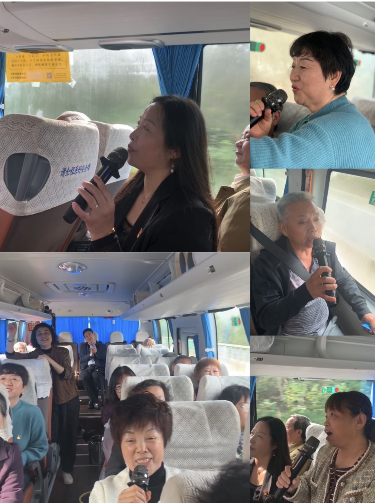在车上,离退休党总支书记张波带领大家高歌革命歌曲,一路欢声笑语驶向杨开慧纪念馆。