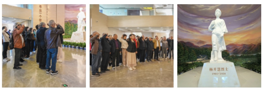 支部的老党员同志满怀敬仰之情参观了杨开慧纪念馆、故居、陵园。走进杨开慧纪念馆,映入眼帘的是静静伫立在大厅中央的杨开慧雕像,目光如炬,望向远方,穆穆之气,沉静如石。