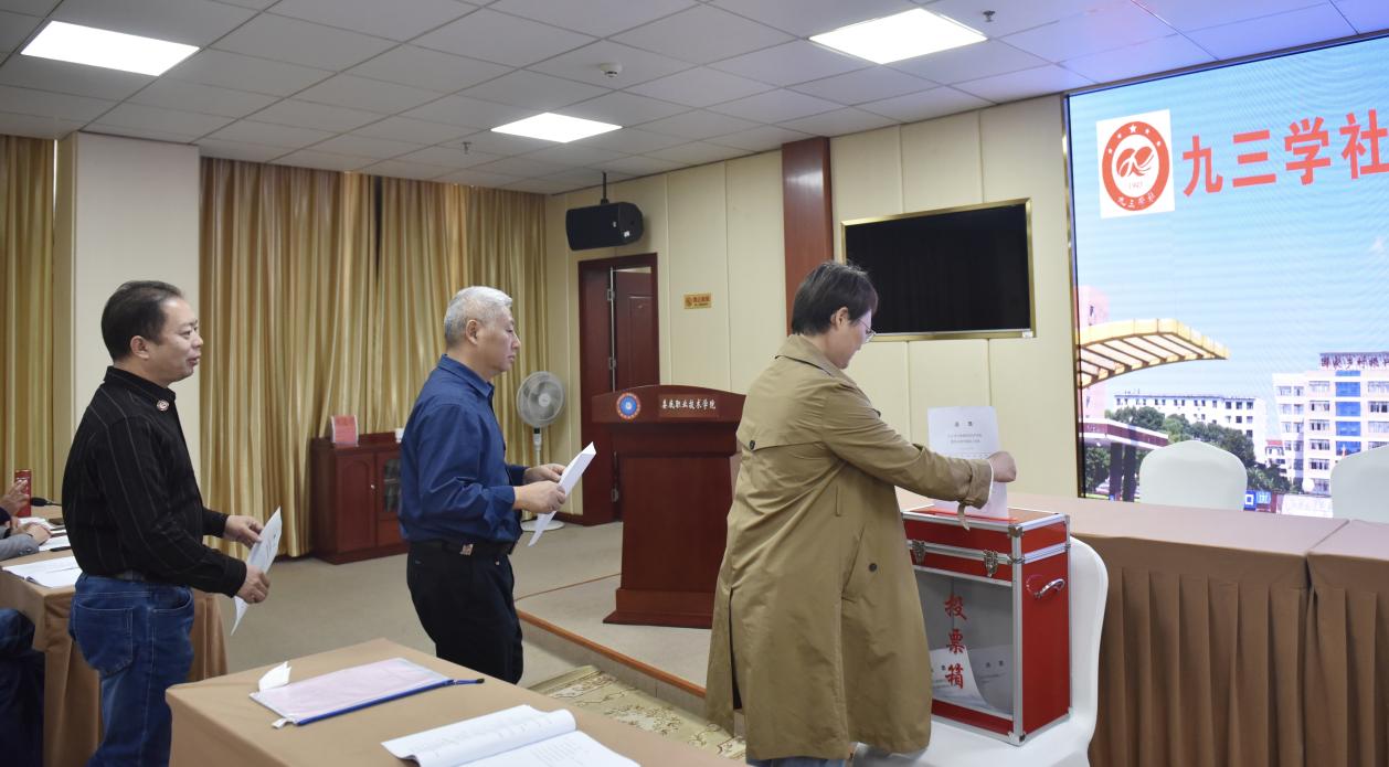 选举会议上,曾毅刚宣读了《关于同意成立九三学社娄底职业技术学院委员会及三个支社的批复》。按照九三学社章程的有关规定,选举产生了九三学社娄底职业技术学院委员会委员及其支社委员。会议选举李细珍为九三学社娄底职业技术学院委员会主委,刘卫国、谢立新当选副主委,肖付良、祖宾、彭辉、蒋丽萍当选委员。其中,肖付良、蒋丽萍、祖宾分别当选委员会第一支社、第二支社、第三支社主委。