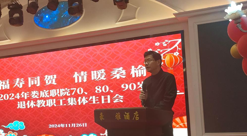 11月26日,我校精心筹备了一场温馨满溢的集体生日祝寿会,向70岁以上过整生生日的退休教职工献上了最为深沉的敬意与热忱的祝福。党委委员、副校长申晓伟亲临现场祝贺。