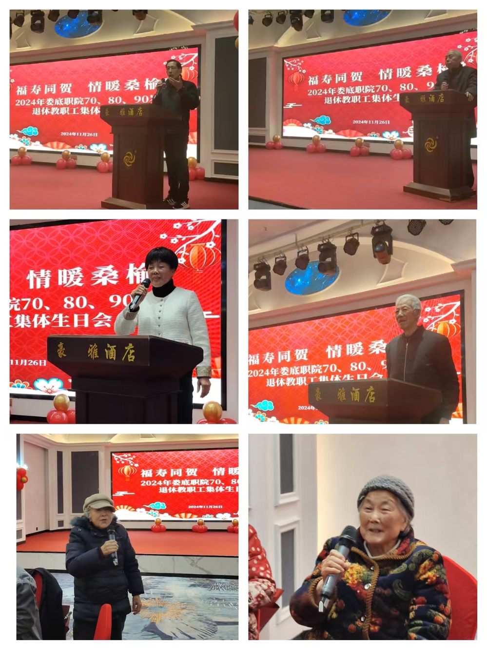活动进行中,寿星们也纷纷踊跃发言,各抒胸臆。有的即兴赋诗,用诗意的笔触描绘人生的斑斓画卷;有的则深情回顾自己的往昔岁月,感慨祖国日益繁荣昌盛带来的幸福生活;还有的对此次精心筹备的生日会赞不绝口。其中,已至九十高龄的黄汉麦同志难掩激动之情,颤声道:“学校为我们举办如此盛情的集体生日会,我们是最幸福的人!”深情而真挚,感染了在场的每一个人。