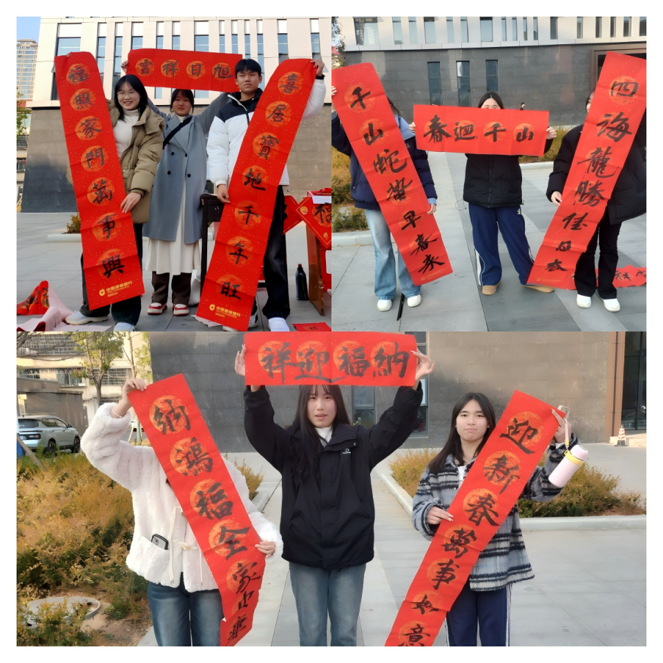 本次活动主要由赠送春联和自由创作组成,吸引了上百名师生驻足欣赏。大家或讨论春联的寓意,或交流书写的技巧,或传递美好的祝福,让更多师生感受中华优秀传统文化的魅力。