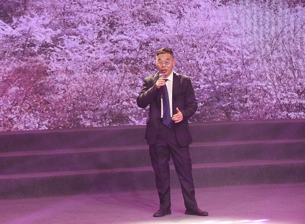 党委书记张征澜致辞,他用新化方言诙谐地向为学校发展做出贡献的教职工表示肯定与感谢,也代表学校党委向大家致以最诚挚的节日问候和最美好的新年祝福,希望大家新的一年再接再厉,奋力向前,追求新成绩,做出新贡献。