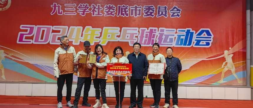 近日,由九三学社市委会主办,娄底市各县、市区各九三学社委员会及支社参加的2024年乒乓球运动会在娄底完美乒乓球倶乐部举办。由我校李细珍领队,社员刘轶中、蒋丽萍、刘克西等组成的九三学社娄底职业技术学院委员会队获得运动会团体冠军、男子单打冠军,女子单打亚军,赛出了娄职人的风采和精气神。
