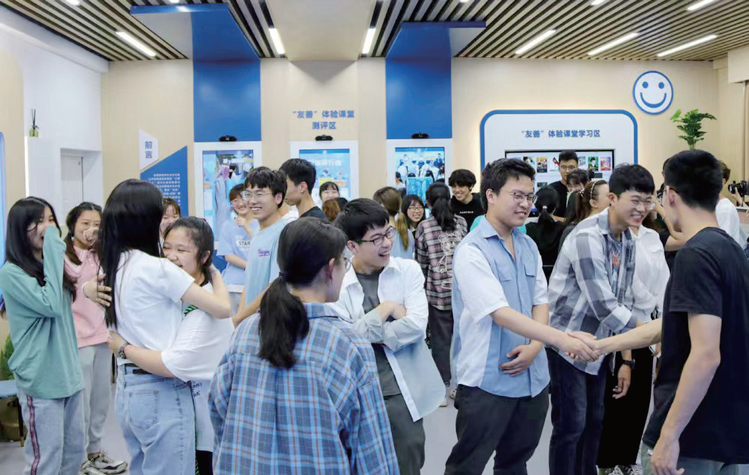 在中南大学的社会主义核心价值观智能教育体验课上,大一学生王智明意外被友善值智能检测仪测评为“爱心天使”,这令他的情绪高涨,愈发把自己的友善情绪半分也不留地散发出来,与同学握手、拥抱。其他获得相似测评结果的同学也兴奋地打趣、欢呼,现场呈现一片欢乐气氛。测评得分不高的同学,则当场被要求到友善体验课堂学习区进行现场学习。他们难为情的窘态为现场增添了几许诙谐,但很快又在同学们的鼓励声中,坦然走进学习区,最终结果也令自己如愿以偿。