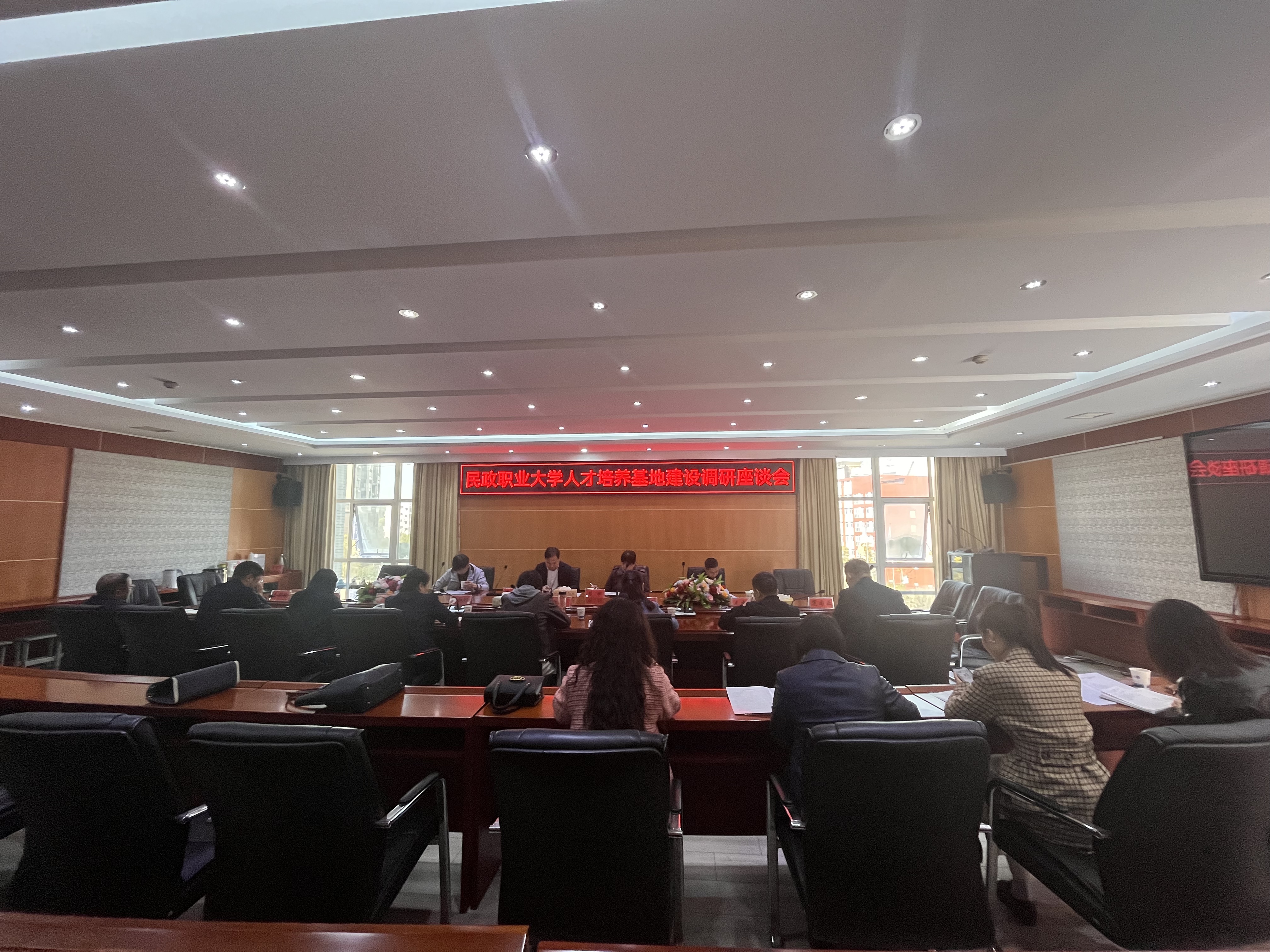 3月21日上午,金职伟业集团总经理潘建明一行代表民政职业大学来我校调研民政职业大学人才培养基地建设工作,市人民政府副秘书长杨洁、市民政局局长何红梅等陪同考察。